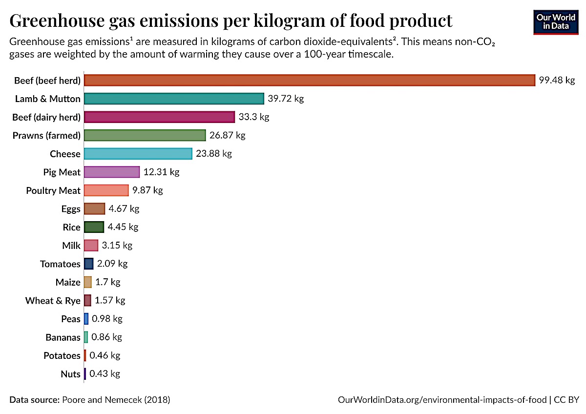 Meat production accounts for around 27% of greenhouse gas emissions in an average Western diet.